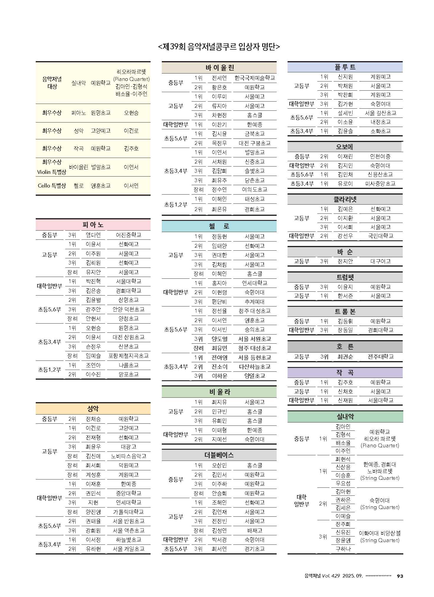 제39회 음악저널콩쿠르 결과 및 보도자료